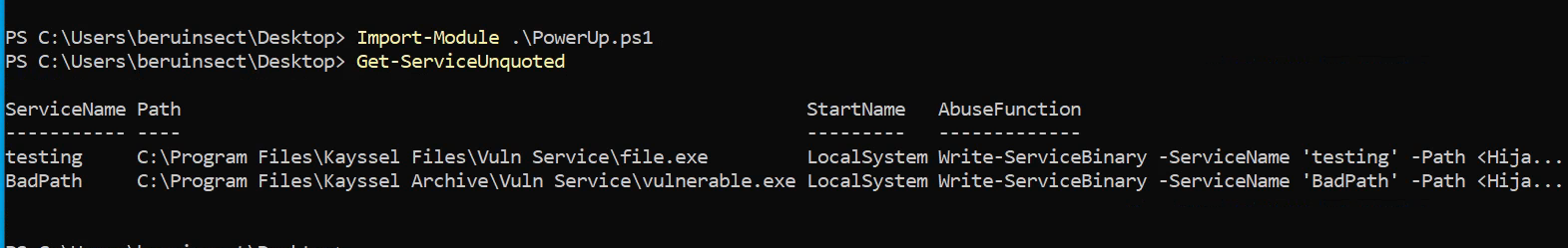 This will reveal the vulnerable path we created. Another tool for identifying escalation vectors is PowerUp, which you can find here: