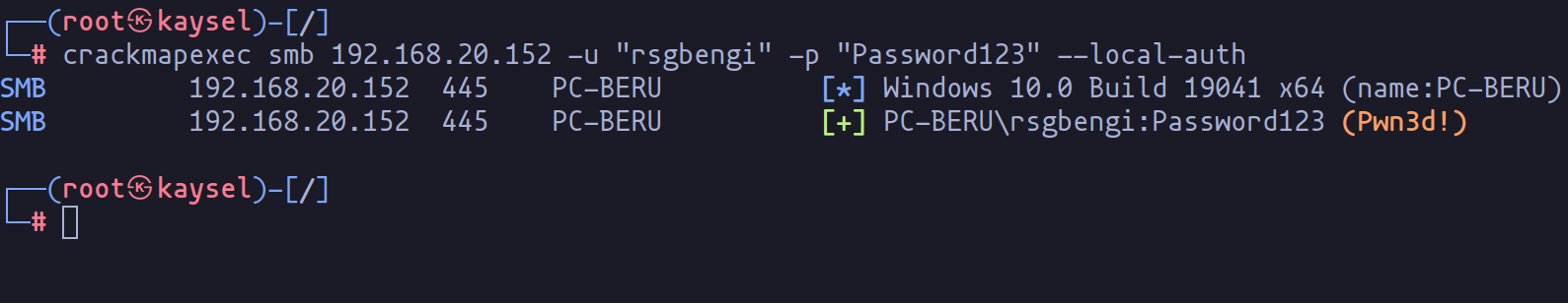 After starting the service, an error might occur, but our malicious user will be created successfully. Verify the user’s administrative privileges with Crackmapexec (remember to disable UAC as mentioned in the previous chapter).