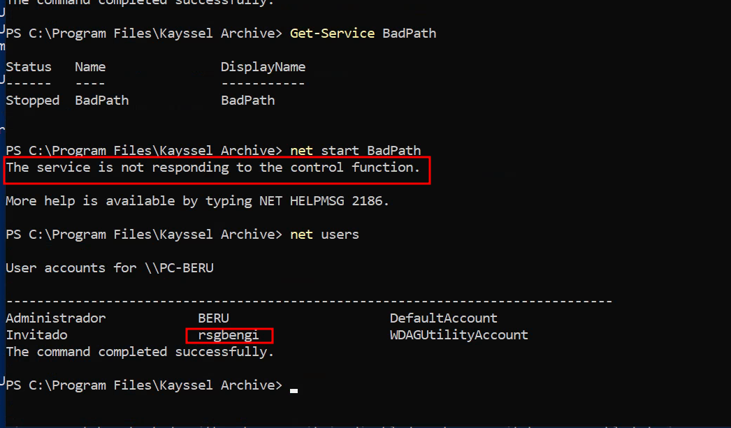 New-Service -Name "BadPath" -BinaryPathName '"C:\Program Files\Kayssel Archive\Vuln Service\vulnerable.exe"'