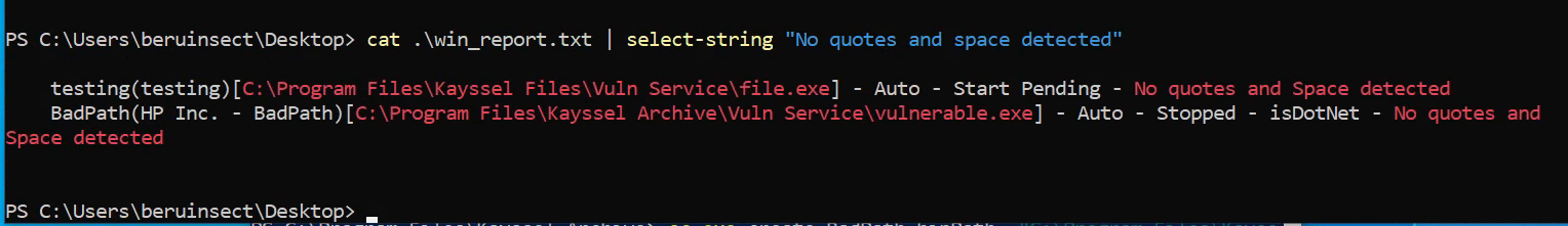 cat .\win_report.txt | select-string "No quotes and space detected"