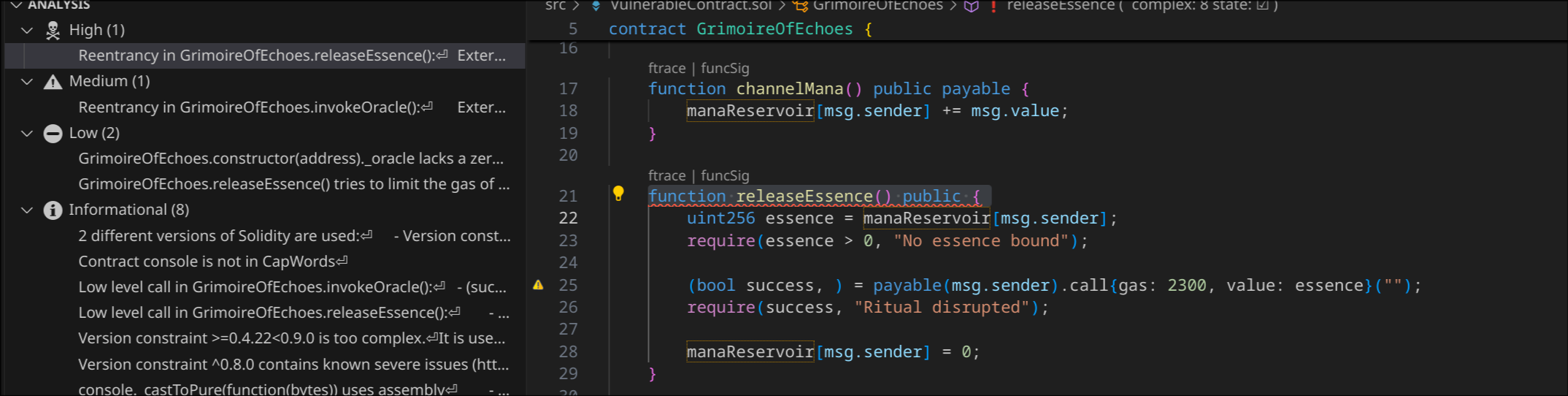What’s really cool is that you can click on any finding and VS Code will instantly jump to the exact line of code where Slither detected an issue. No more hunting through files!