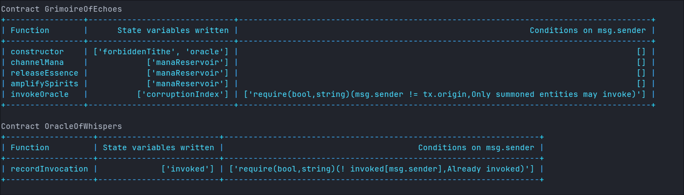 Let’s examine a practical application of Slither against our target contract from last week. While Slither offers numerous advanced options, I’ll demonstrate the reconnaissance approaches that consistently deliver the highest value intelligence during my own contract penetration tests.